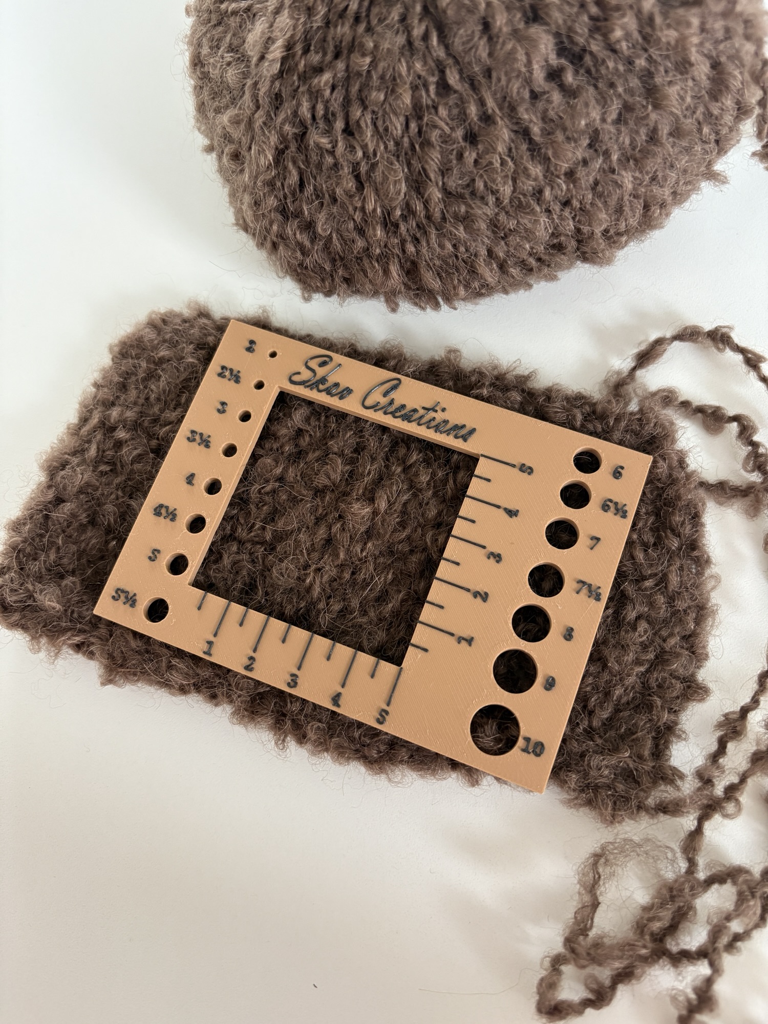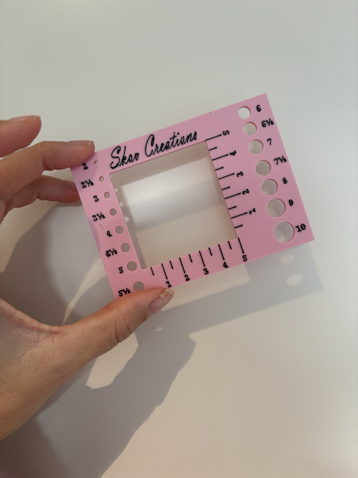 Denne strikkefasthedsmåler er et lille, men virkelig nyttigt værktøj, du altid kan have i tasken. Med et 5×5 cm vindue kan du hurtigt og præcist måle din strikkefasthed, så du rammer de rette mål i dine projekter.